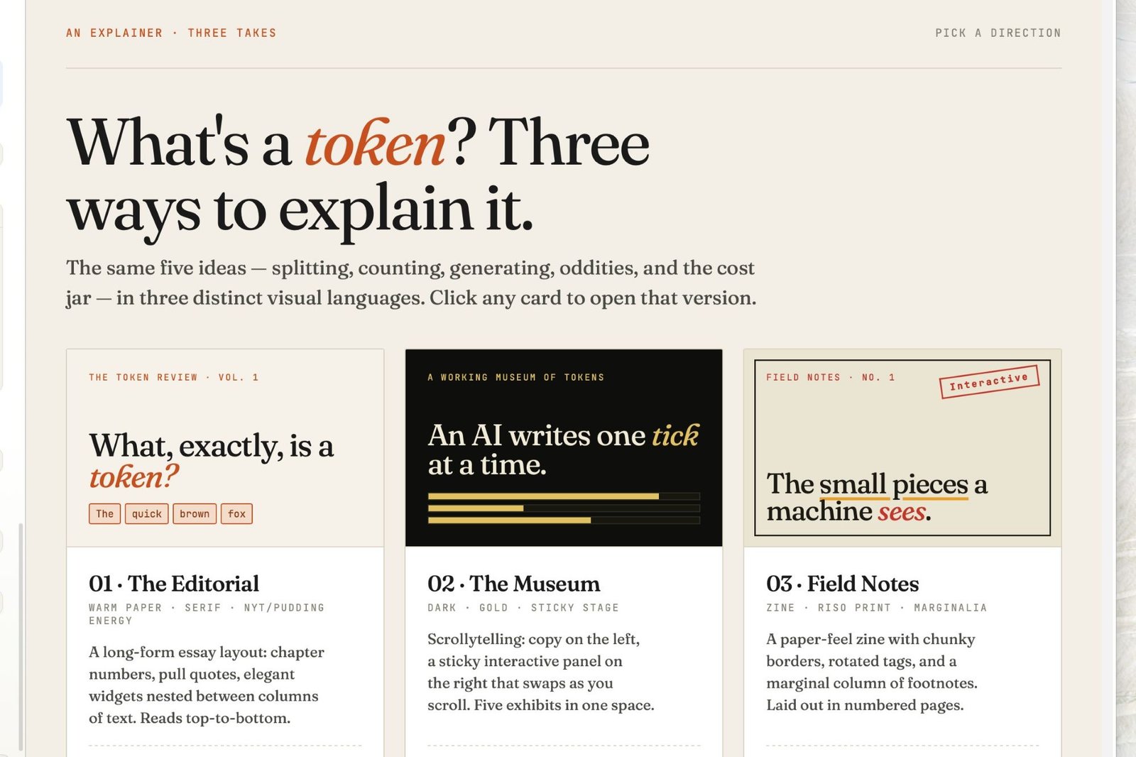Within five minutes, Claude Design had created a draft for me–a handsome-looking webpage that takes you through AI tokens step-by-step, including interactive sections where you can type in words and watch the token count in real time. The copy was clear, friendly, snappy, and–as far as I could tell–accurate. It was pretty much just what I wanted, all in the first shot.