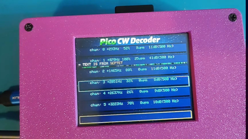 Another issue with the code is that it decodes multiple channels in real time. So looking up spelling corrections, for example, has to be done rapidly. The device can also send code and show stats and graphics on an LCD screen.