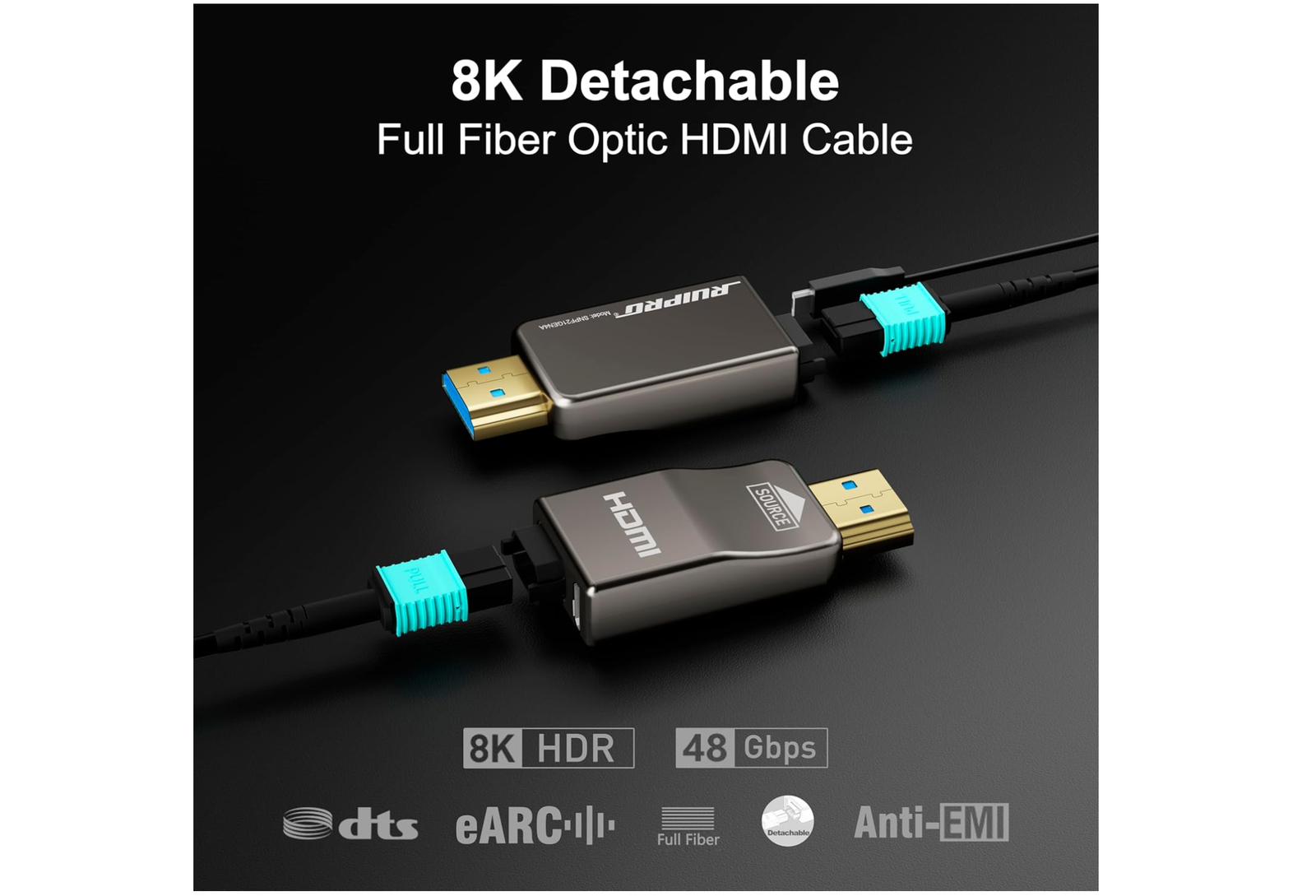 The next evolution of cabling, however, is swapping electrons running down copper for photons traveling over optical cable. That’s the basis of Ruipro’s 8K HDMI cable: It uses photons for most of the length of the cable, but terminates in a small (detachable!) connector that converts the optical signals into electrical ones. Otherwise, this Ruipro Armored 8K HDMI Cable is just an “ordinary” HDMI 2.1 cable for your desktop gear.