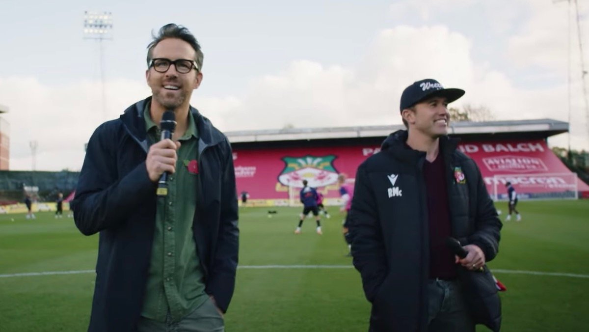 Ryan Reynolds and Rob McElhenney omn the pitch for their soccer team in the trailer for the docuseries Welcome to Wrexxham